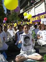 来自澳洲、加拿大、德国、英国、瑞典、日本、台湾、荷兰、奥地利及美国的法轮功学员,来到纽约的中国驻联合国总部使团,表达自己对中国政府继续镇压、迫害法轮功的谴责。