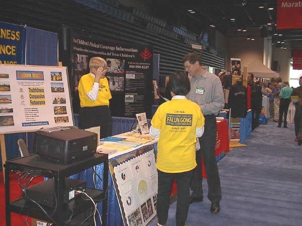 【明慧网2001年1月17日】 2001年休斯顿健康博览会于元月12和13日在该市乔治.布朗会议中心举行,参加此次博览会的有几百家各种体育和健身团体及各大商家,法轮功作为集东方文化精髓的一项修身健体运动也参加了本此博览会。