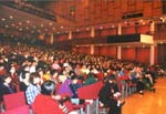 | 法会上曾先生一家四口发言讲述修炼心得,7岁和11岁的兄弟也谈到了自己的改变。 | 向政府租用的大会堂音乐厅庄严、漂亮 |
