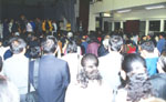 | 各国学员依次进入会场,秩序良好 | 位于尖沙咀闹市区的灯箱宣传十分引人注目 |