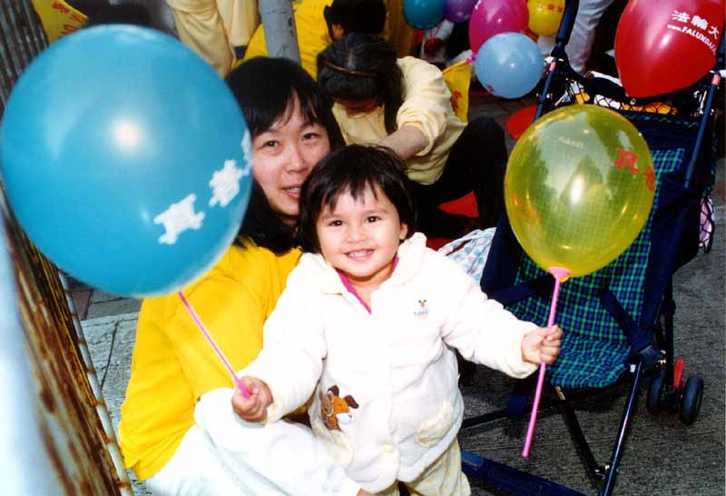 下午,八百名学员在警方的开路下从中环的遮打花园游行至“中联办”(前新华社),促请中国政府制止江泽民一夥镇压法轮功,释放所有无罪被关押的大法学员,给予法轮功以合法的修炼环境,还法轮大法及其创始人清白。119名身穿白色衣服的学员手捧着被迫害致死学员的花圈,在9个法轮图的带领下缓步而行,场面庄严肃穆。跟着是来自世界二十三个国家和地区的学员,举着各自带来的横幅,呼吁世界上所有的善良人民了解法轮功真象,并帮助中国政府制止镇压法轮功。
