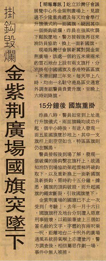 1月14日晨香港奇景:见怪不怪,特区区旗独自飘扬