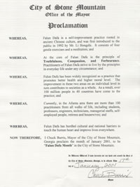 乔治亚州石头山市宣布“法轮大法月”