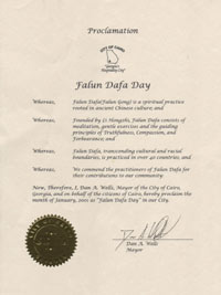 乔治亚州石头山市宣布“法轮大法月”