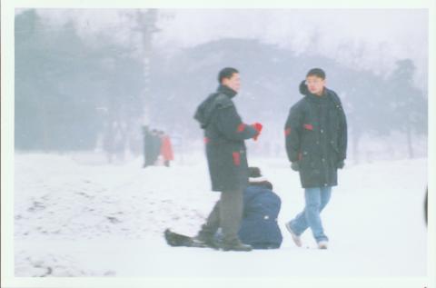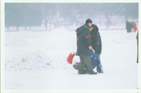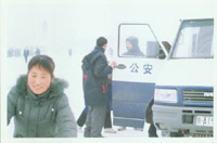 (对于横幅,当时由于离得太远没有及时拍下来,很遗憾,也由于我们也被人跟踪、盯梢、为了保全底片,我们不得不退出广场。照片由于下雪光线不足,不太鲜艳。)