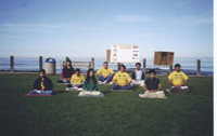 每天会有游客当场学功,或索取资料。两位从墨西哥来的女孩子, 学完三套功法后,说她们从未有过这样舒畅的感觉, 激动的连声说,下次只要来圣地亚哥, 一定来海边炼功。另一位澳大利亚白人学完功法走后,又特地跑回来要走多份资料。他说:尽管我只学了一次,我知道这个功法很好,我要让我的朋友都来学。此情此景让人不禁感叹:法轮大法的美好终究会被好人发现并认同的。任何政治力量或诽谤似的宣传都无法控制人心的向背。“人们都清醒了,在重新审定这一切,看待这一切。谎言、假象都将被一个个地揭穿”(《李洪志师父在美国西部法轮大法修炼心得交流会上的演讲》 )。学员每天原本两小时的炼功,每次都延续到四个小时方结束。(图为海边炼功的留影)