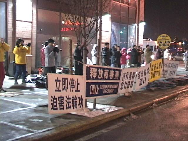 【明慧网2001年1月24日】 元月23日,新年除夕,来自纽约、新泽西100多名法轮大法弟子冒着严寒赶到中国驻纽约总领事馆前,向全世界华人预祝阖家幸福、新春快乐,并呼吁中国政府停止非法镇压法轮功。