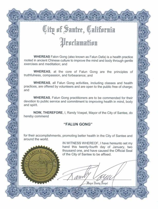 加州圣迪市褒奖法轮功