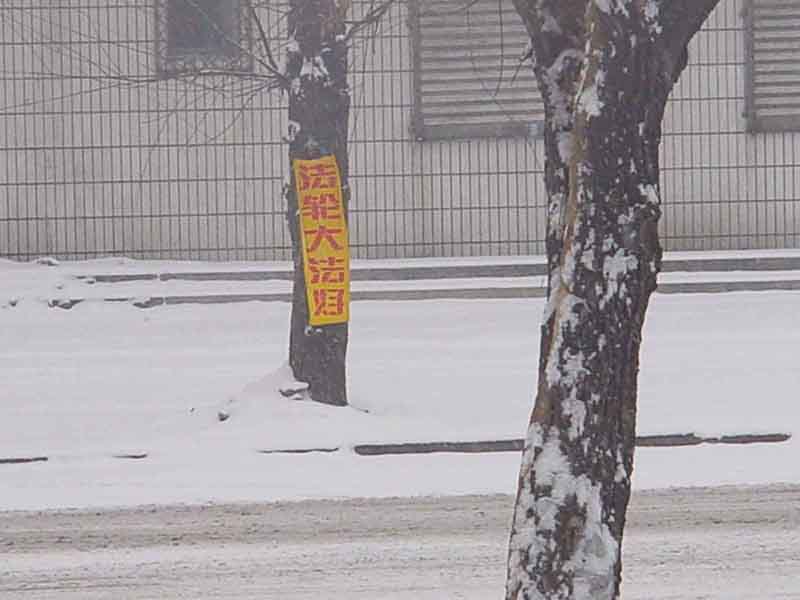 新年前某市邪恶势力再次猖狂抓捕三十余名大法弟子,大法弟子为了窒息邪恶,于新年前后走出来证实大法。附图。