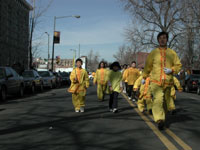 修炼者们说,他们举行第二次年度游行和一小时的优雅示范炼功除了是为庆祝中国蛇年的开始,也是为了让人们了解这个在中国引起争议并受到镇压的功法。