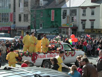 游行在下午1点半左右正式开始。学员们队伍的最前面是一辆缓缓前行装饰漂亮的花车,随着庄严优美的大法音乐,四名弟子身着醒目的黄色炼功服,面带微笑一遍遍向周围数千名观众展示着功法动作。紧跟花车后面的是三名女学员,她们怀抱着“真善忍”三个大字,然后是近30名学员排着方队边游行边炼功。其余的学员则忙着给围观的中西方游客散发讲清法轮大法真象的传单,报纸及小册子等。许多观众向我们欢呼和鼓掌,有的为我们拍照和摄影,不少人在向弟子们询问和索取资料。
