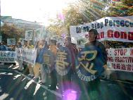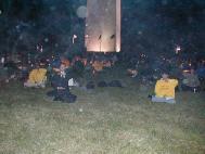2001年10月9日晚,约600名大法弟子在华盛顿纪念碑前悼念被江泽民邪恶集团迫害致死的已知的至少293名同修。烛光悼念夜大法再次显威,法轮满天旋转。