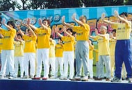 进场时,会场外大排长龙,功友此时有的发书签或简介等大法资料,有的开始向人们讲清真相,征集签名支持「紧急救援中国受的法轮功学员」。下午在场外园游会表演舞台上的节目都是趣味,动感活泼的表演,当我们开始表演五套功法时,那份宁静祥和的氛围立即感染了现场的观众,有人跟着炼功,有人询问在哪里可学功,有一位男士自小就有功能,他直说这法轮功好!