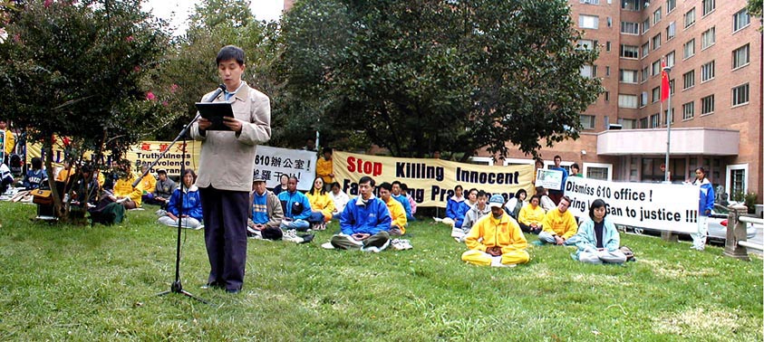 “我们会集在这里,(再)一次呼吁中国政府停止迫害法轮功学员的骇人听闻的暴行。”