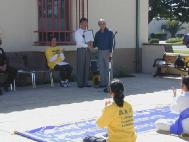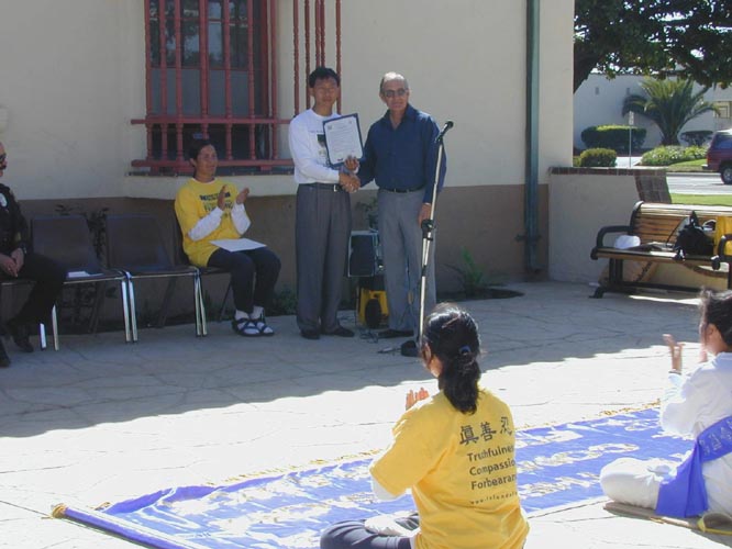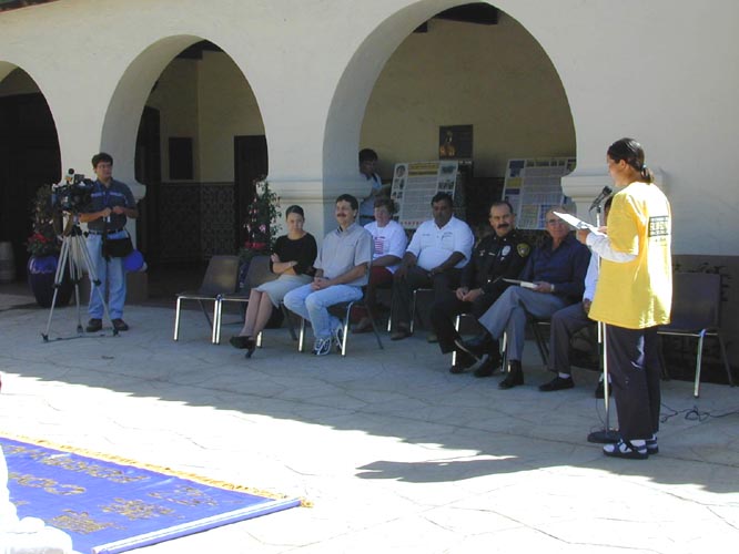 市长说:他非常遗憾中国发生的对法轮功的迫害。虽然当地的居民不富裕,圣塔.玛丽亚也只是加州海岸线中段的一个普通城镇,他还是愿意尽力给我们帮助。对此,我们表示了由衷地感谢。我们清楚地知道,如果每一个地方的政府和人民都能够像他一样在邪恶面前敢于发出正义的声音,邪恶将无法逞凶。