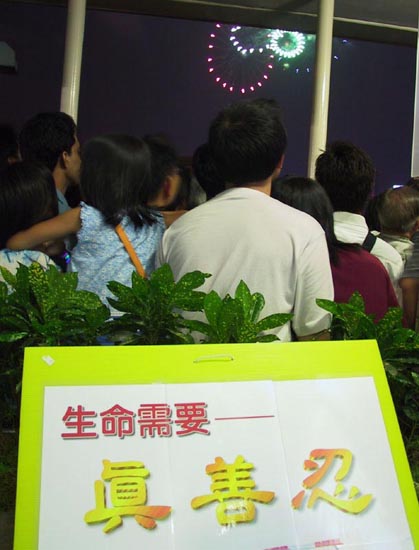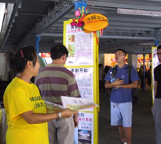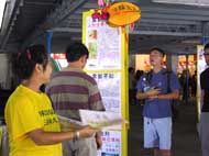 【明慧网2001年10月2日】今年10月1日是中秋节,在香港是前后一连三天假期,香港学员以“生命需要真善忍”为主题,以多种形式展开向市民洪法和