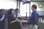 一路上,学员们深深感受到师父不断将有缘人领到我们面前:一对夫妇热情地给我们拍照留念,并说他们会写信给他们的议员和当地报纸支持我们;两名来自圣芭芭拉学校的男女青年人在一个加油站与学员们邂逅便一见如故,当学员们表示欢迎他拍照片留念后,他高兴极了,他说,“为世界的和平和正义以及维护人权一直是他的理想,今天遇到你们这样身体力行为正义良知(Righteousness and conscience)而奔走的人,我真是太激动了。”第二天,他应学员们的邀请,又来到圣芭芭拉市政厅前的新闻发布会,会后,他表示要将法轮功学员遭受迫害的纪录片及介绍法轮大法的录像片播放给他学校的同学和所有亲朋;一名妇女在观看真相展板后失声痛哭,她说自己从来没有看到过如此残忍和不人道的兽行,她为在大陆法轮功学员感到非常难过和担心并将为他们祈祷;一对参加了温图拉新闻发布会的西人夫妇在看过展板和材料后,询问如何能够帮助我们,他们同时表示担心由于911袭击后美国人民对法轮功学员的支持可能受到影响,学员们告诉他们正邪是冰炭难容的,法轮功学员承受了超过两年的残酷迫害,更能体会受难者们的痛苦,而我们正是要把真善忍的宇宙法理带给更多人,这样才能从根本上清除一切邪恶势力。他们听后十分赞同并由衷地表示他们对法轮功学员的大善大忍的钦佩。