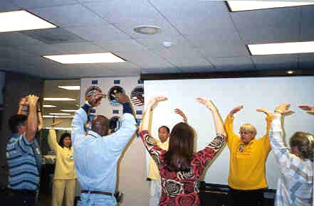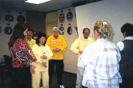 【明慧网2001年10月21日】 2001年10月17日,辛巳年九月初一,师父美南佛法报告会五周年纪念日,德州大法弟子于美南航天太空城健康日举办了洪法活动,受到西人观众欢迎。