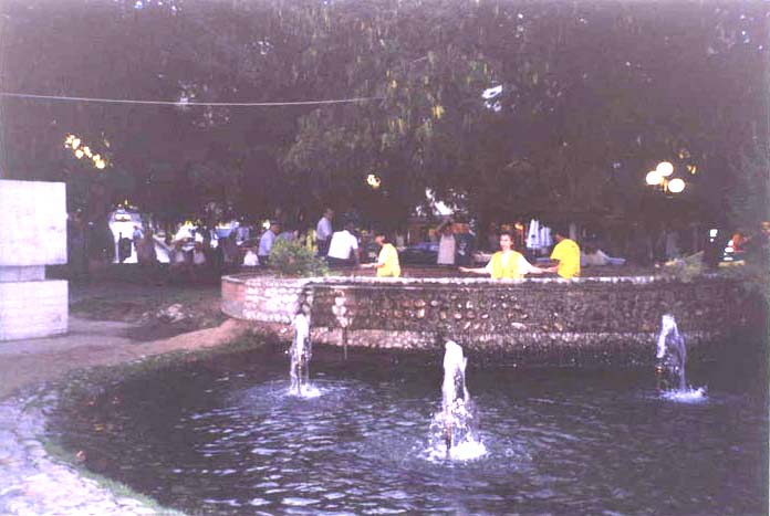 图片三:希腊第二大城市萨龙尼克(Saloniki)的第一个炼功点建立了。在萨龙尼克的阿里斯托托大学和国际展览会外面,我们在一个小时之内就派发出了1500张传单。在那里,第一个法轮功炼功点建立了。多数参加者都曾炼过其它功法。