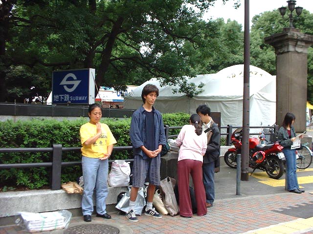 特别值得一提的是,一位英国的大男孩在中国驻日大使馆前,获得静立请愿的弟子给他的法轮大法资料还没多长时间,就认真地和大家一起学法(英文版《转法轮》)、炼功,这次又坚持要和大家一起来发大法资料,通过他的介绍,也使许多以英语为母语的西方人得知了真象,甚至得法。