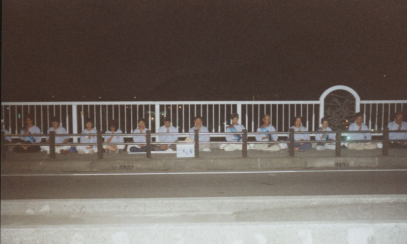 次日,我们走进了南方澳这个观光客很多的渔港小镇,当地学员感叹得法人数一直无法突破,因此,我们于行程结束前,在镇上最高的桥上再发正念,铲除破坏大法的一切邪恶。望着繁星点点的夜空和远方渔火相互辉映的美景,想起洪吟中那首《游日月潭》:“一潭明湖水,烟霞映几辉,身在乱世中,难得独自美。”真希望此美丽小镇的善良民众能早日得法。