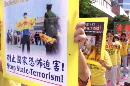 路透社图片新闻:法轮功学员在香港举行抗议活动