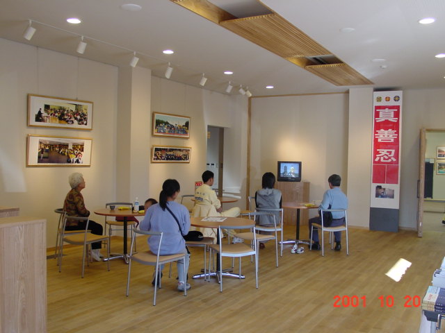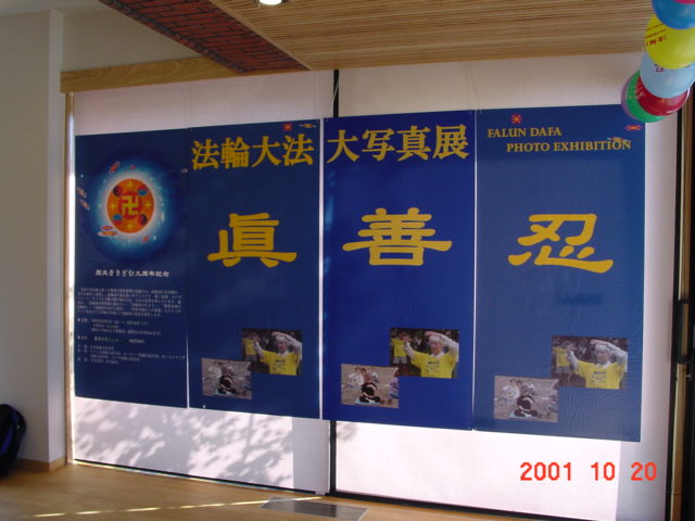 还有一位日本人是位教师,自中国镇压法轮功以来,他百思不得其解,法轮功作为一种气功为什么遭到中国政府禁止和镇压。他得知大法弟子要在本市举办图片展后,怀着要弄清楚这个问题的想法,他来到了我们的展厅,看了一幅幅再现镇压前大陆学员集体炼功的壮观场面,又看一幅幅惨不忍睹的受迫害的像片,再看那来自世界各地包括中国99年7.20前给李老师及法轮功的褒奖,他说:“我明白了!”他毫不犹豫地在我们SOS紧急救援活动签名本上签了名。与我们的学员更详细的交谈后,他表示要学法轮功并当场购买了大法经书。