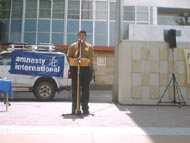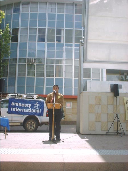 下午,国际大赦组织在堪培拉市中心举行“大赦组织行动日”活动,目的是悼念世界上所有受迫害致死的死难者。二年来澳洲学员不断向该组织讲清真相,该组织也一直了解并支持我们,活动中法轮功发言人宣读了三百多名法轮功学员被残酷迫害致死的名单,同时展出了酷刑图片,学员派发着资料,更多的世人明白真相,并纷纷签名支持。