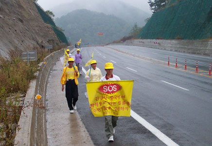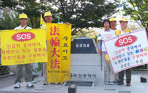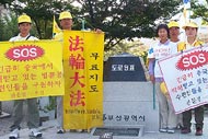 图片报道:韩国学员在中国大使馆附近静坐请愿