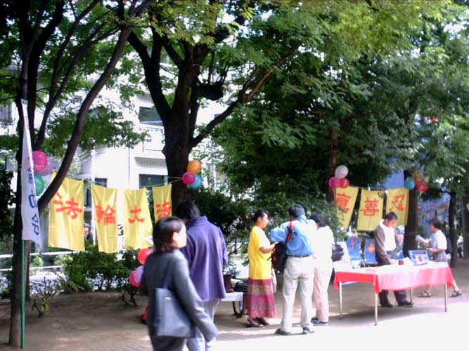 【明慧网2001年10月4日】9月29日及30日,位于东京东北部的板桥区(人口50万)举行了盛大的2001国际志愿活动年纪念节,共有150多家志愿者团体参加。板桥区法轮功会亦参加了此项活动,并申请到纪念活动本部的产文大厅四楼厅室,和板桥大山公园两处场所。一部分学员在公园炼功,一部分发放介绍法轮大法及有关大陆学员受迫害事实的报纸,两天内向参加节日的区民发放了近千份报纸。两个摊位均展示了中、日、英、和韩文的大法书籍。