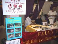 这是费城学员第二次参加该博览会,大家明显感到很多阿兰城居民对大法已有一定程度的了解,这与几位当地学员一年来孜孜不倦地向媒体、政府和公众洪法和讲真相的努力分不开的。尤其是两个月前,当地发行量最大的报纸《晨报》曾刊出整版的文章采访当地学员和介绍大法及遭迫害的情况,在阿兰城引起很大反响,有力地清除了邪恶势力对善良阿兰城市民未来得法的障碍。