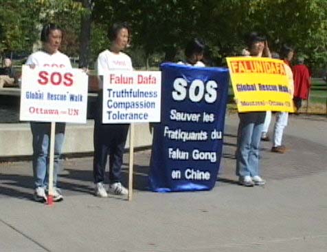 9月30日,渥太华、蒙特利尔学员在联盟公园举行新闻发布会,欢送蒙特利尔学员一行四人从渥太华步行至纽约联合国总部,紧急呼吁救援中国受
