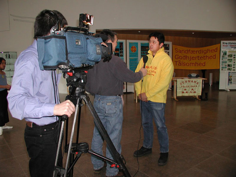 最使我感动的是电视台的摄影师,他不仅拍下了我们的炼功场景,还把中国大法弟子受迫害的图片一张一张地仔细拍了下来,这些令人震惊的画面在电视报导中清楚地呈现到每一个格陵兰人民的眼前。