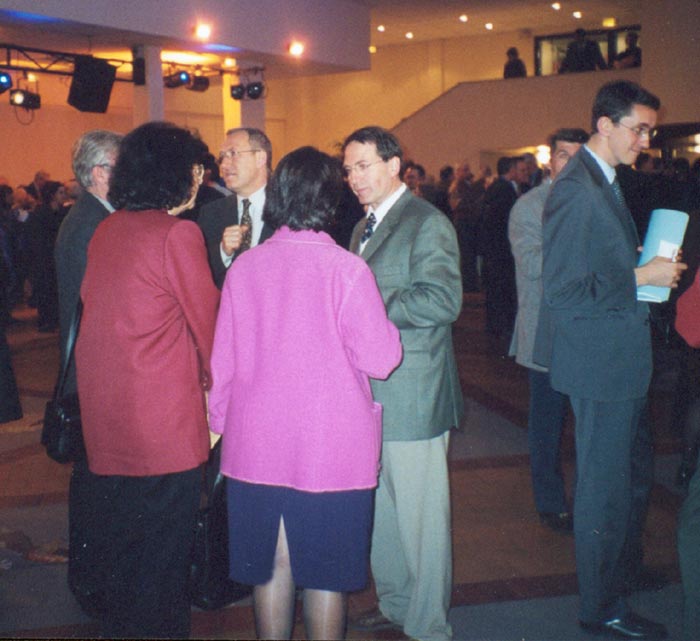 在晚会期间学员向曾经在欧洲议会决议上签名谴责中国镇压法轮功的法国RPF党主席、欧洲议员,上塞纳省(Haute-Seine)参事委员会主席、前内政部长察理·巴斯卦(Charles PASQUA)表示感谢,并向他递交了法轮功真相资料。学员们还向前来参加晚会并发表讲话的另一位欧洲议员、总统竞选人、法国UDF党主席,前教育部长弗朗索瓦·巴颐忽(Francois BAYROU)先生递交了法轮功的真相资料。席间学员见到不久前曾经支持SOS环球步行的克拉玛市(CLAMART)议员让-皮埃尔·福舍先生(Jean-pierre FOUCHER),与他交谈中,学员给他介绍了一些最近的来自法国政界人士对法轮功的支持,他告诉学员他也曾经就法轮功的问题质询过外交部长,他一直在关注着中国的法轮功学员的处境。临分手前,晚会的主人、议员安德烈·桑迪尼先生热情地与学员合影留念,并接受了最新有关法轮功的真相资料。