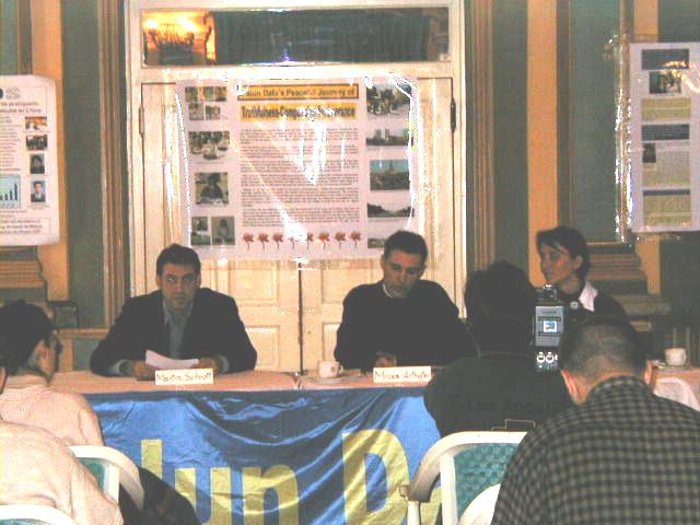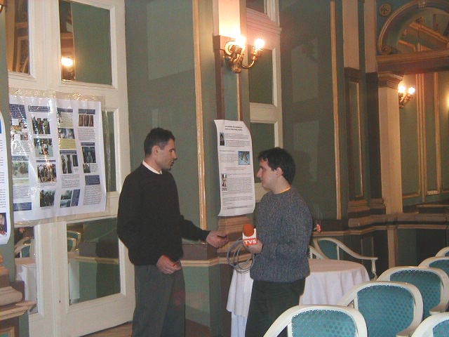 参加记者招待会的摄影师不仅拍下了所有的发言,还详细的拍了每个展板。会后,电视台和广播电台对大法弟子进行了采访。