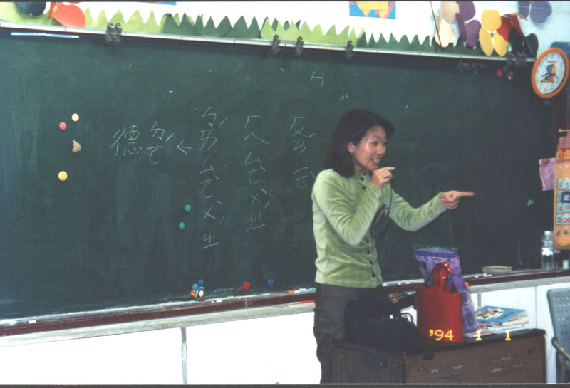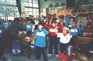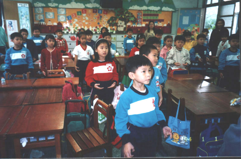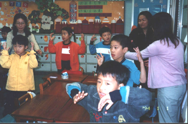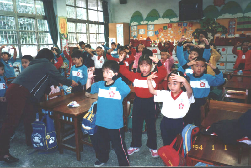 这位学员开始向小朋友洪法,朗读洪吟与教功。她跟小朋友们讲“真、善、忍”的道理,并举生活实例说明何谓“真、善、忍”。每个小朋友都聚精会神、安静、饶有兴趣地听着,当台上提出问题时也都踊跃举手抢着回答,在他们举例问答中看出了孩子的纯真、善良本性。一位一年级的小朋友,当问及什么叫“真”时,居然大声说:“‘真’就是做真人,做真事。”伫立一旁帮忙的同修们喜悦感动地鼓掌并说:“你好棒呀!说的真对。”我觉得他真是个有慧根的孩子,相信有许多常人都已迷失的不知何谓“真”了。随后,请小朋友起立在原地炼动功,这时我们几位助手趋前教导炼功动作。一节课,很快地就结束了。