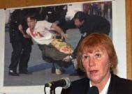 “来自10个西方国家的代表昨天被关押起来了。这件极其严肃的事情一定不能再被忽视了,国际和欧洲社会一定要利用它们的经济和政治手段,要求中国停止这种野蛮的、无理的迫害。我们再也不能仅仅为了几个商业交易,而对中国大量的侵害人权和国际法规的事件,视而不见了,”她又说道。
