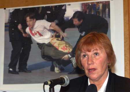 【明慧网2001年11月22日】11月20日36名西人法轮功学员在天安门举“真善忍”横幅请愿遭拘捕。消息传到温哥华,正值加拿大公共雇员工会(CUPE-Canada Union of Public Employee)两年一度的全国年会在温哥华召开。该工会拥有四十九万会员,工会主席Ms. Judy Darcy曾在加拿大总理十月赴华参加APEC会议前给总理写过一封强有力的信,要求中国江泽民政府停止镇压法轮功。