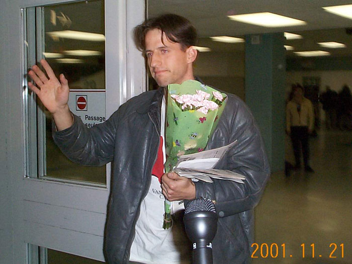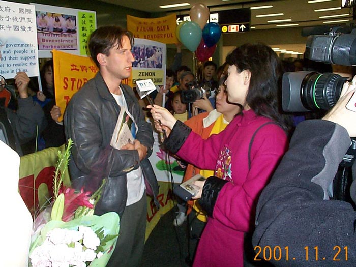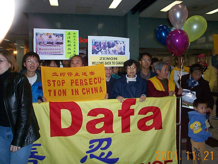 近60名加拿大多伦多大法弟子和数家中西文媒体在机场迎接泽农的归来。当泽农步出候机室时,在场的所有人报以热烈的掌声,一束束鲜花,一张张慈悲的笑脸,向震撼寰宇、令天地动容的实践这一伟大壮举的大法弟子致以最崇高的敬意。