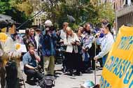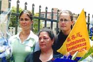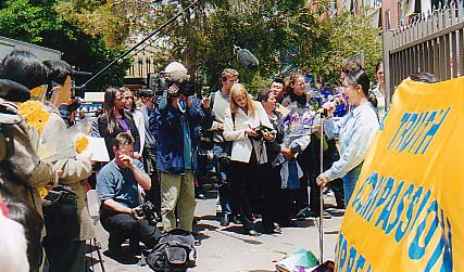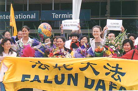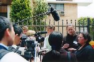 四位学员致辞以后,记者们长时间围住三位西人学员,又详细问了许多问题。摄影师们则扛着摄象机,将学员们展开的横幅一一录下,过往的行人接下了传单。风雨交加多日的悉尼今天终于放晴了,灿烂的阳光见证了今日的一切。