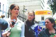 三位女性法轮功学员分别做了简短发言,介绍了她们在天安门广场打坐、被抓、被强行遣返的经过。她们说,北京时间11月20日下午2时许,36名来自英、德、法、美、加、澳等12个国家的西人法轮功学员在天安门广场合影留念后,开始坐下来盘腿打坐。然而,在他们展开写着“真善忍”的横幅并打坐不到几分钟的时间,他们便被蜂拥而至的警察强行冲散。Ms. Belonogoff被粗暴地连打带扯地推入警车;Ms. Mack的白色T恤被警察撕破了一个大洞(她在发布会现场向大家出示了这件被撕破的衬衣);Miss Douglass因拒绝上车而被几个警察强行架起,硬拖上车;而祖辈有中国血统的Mr. Chris Cominos则被数个警察连打带踢了多下后塞入警车,其手臂、背部及手掌的瘀血和伤痕至今清晰可见。Ms. Belonogoff说,她看到在场的数百上千名中国民众睁大的眼睛,显然被眼前发生的一切惊呆了。