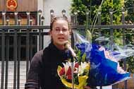 “在警车上,我们都尽可能地把头伸出车外,用尽全力用中文喊:法轮大法好!为的是让更多人听到我们发自肺腑的声音。”Ms. Belonogoff表示。