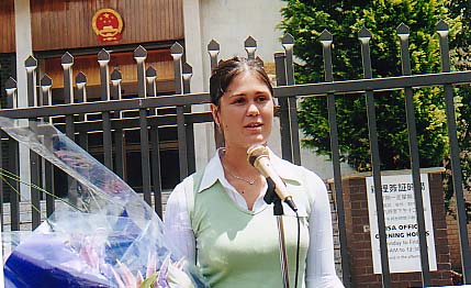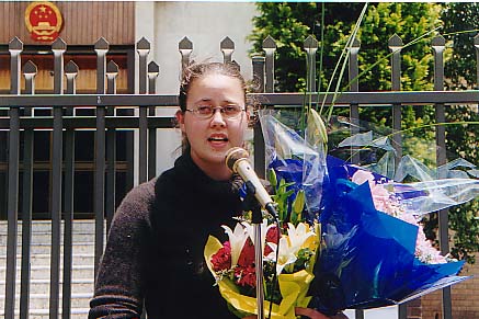一位来自中国大陆的曾被劳教一年的法轮功学员也作了简短发言。她说作为中国人,她为起源于中国的法轮大法在世界上得到如此广泛的传播和认同而感到骄傲,同时又为中国的法轮功学员不但得不到自己的政府的保护、反而受到自己的政府的迫害,而现在居然需要外国的同修来为他们请愿而感到悲哀。是结束这场残酷迫害的时候了。