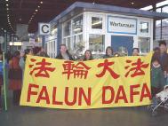 三名来自柏林的德国大法弟子昨天从法兰克福坐火车回到柏林,当地的许多学员去迎接并在附近举行了记者招待会,在火车站他们再次展开中德文的“法轮大法”大型横幅。与会记者听取了他们在中国的经历,德新社的记者详细询问了每一个人的情况。