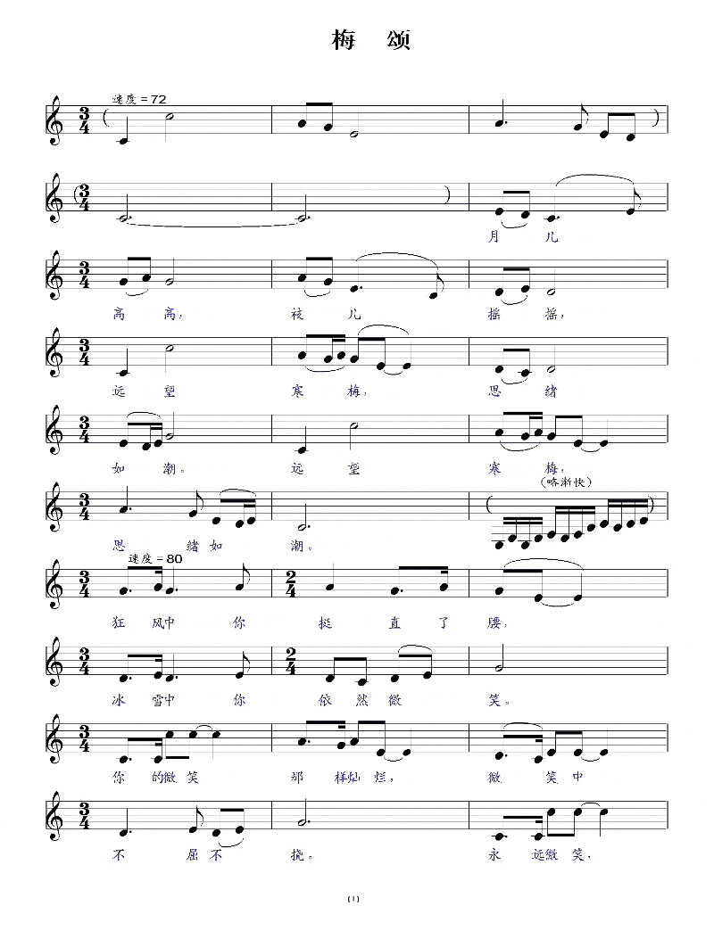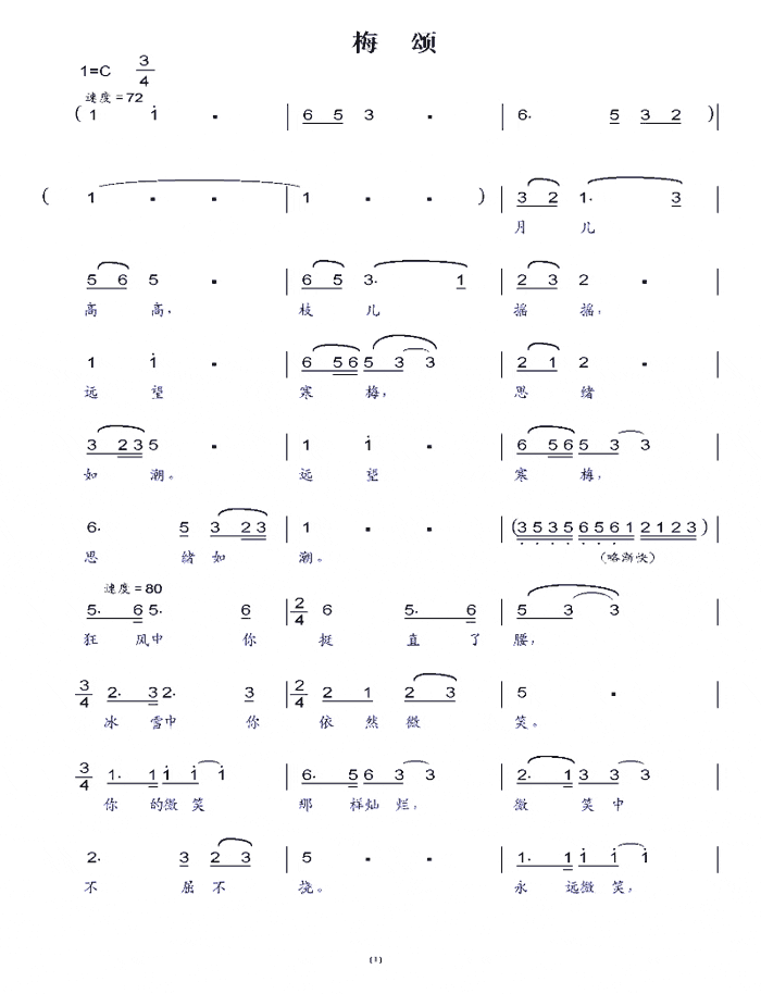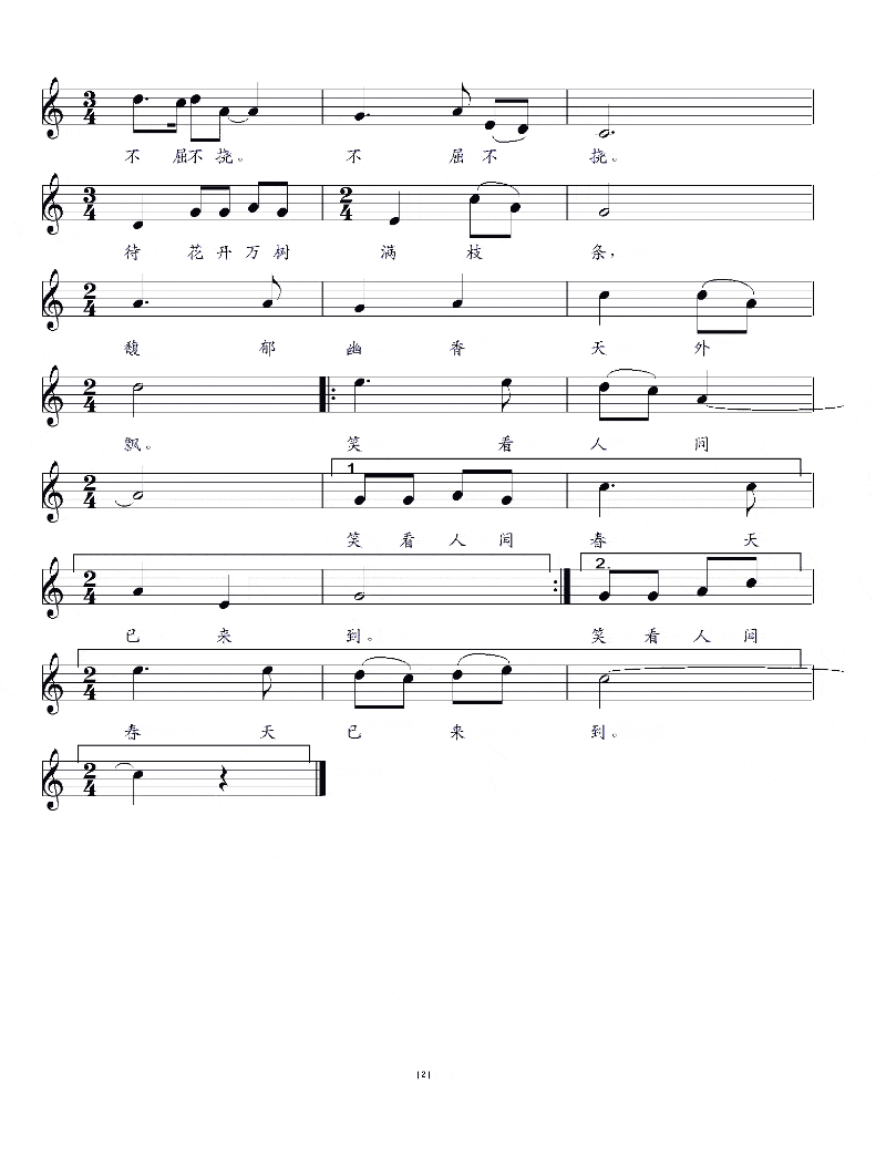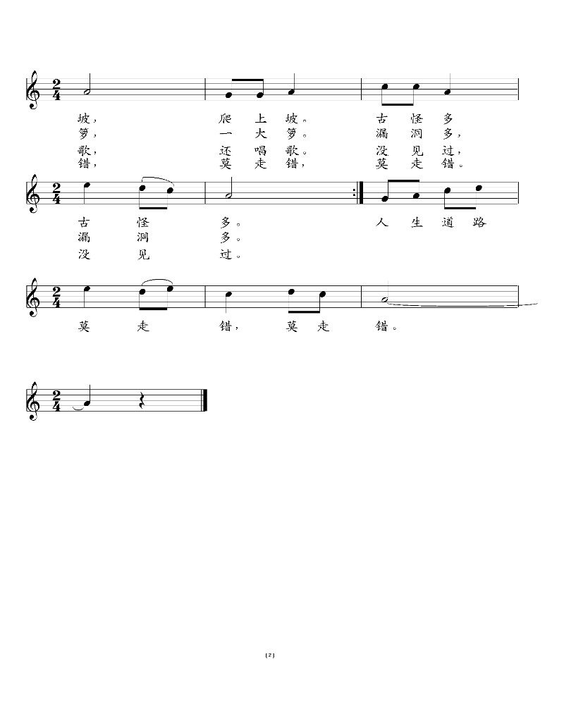 | 歌谱 | 简谱(一) | 简谱(二) 1页 2页 | 五线谱 (1页) (2页) |