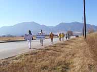 我们一行共有十九个人,其中包括两位老人,四位小弟子。队伍中还有一位当地的美国人,他不是学员,但他听说了“紧急救援步行”的活动后,就特地赶来参加我们的活动表示支持法轮功。