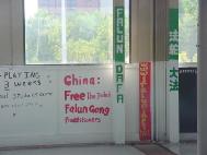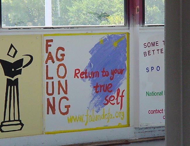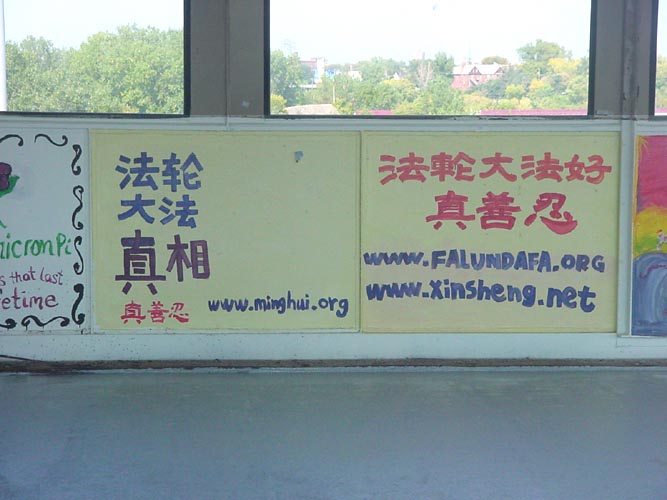 第一件,当时我们在大陆游客常到的一个洪法点上正播放揭露自焚真相的影片,小型萤幕前围满了观看的人。突然,从其中走出一个大个子的人,怒气冲冲地冲到旁边洪法的一位女同修面前,手拍着她大声地说着什么,情绪激动。一看此景,我走了上去,刚想说话,同修拦住了说:“别理他,不要给他市场。”可话没说完,那人已冲到了我面前,更提高了声音说:“我是从北京来的,你们说的全是假的。你们这么做是有政治目的的……”声调越说越高。第一次面对如此情景,有点愕然,刚想回应,同修又叫我离开。我觉得我并不应该离开,即使不跟他解释,也应该站在这里,让世人去分辨真与假。接着我微笑着对他说:“希望你认真地全面地看一下……”刚说到这,他立刻大声地打断了我的话,又重复着他那番论调。我明白了女同修叫我离开的原因──他根本就不给你说话的机会,目的是破坏。