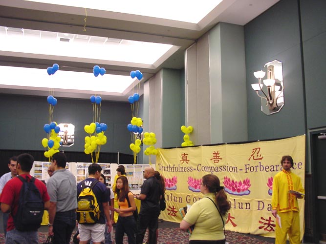 上个月,在奥兰多的中佛州大学举行了文化交流节。20多个民族的学生参加了游行和一天的展示活动。奥兰多的学员参加了这次活动并作了功法表演。法轮功展位的绚丽场面吸引了众多的观众,他们说法轮功夺走了所有人的注意力。