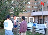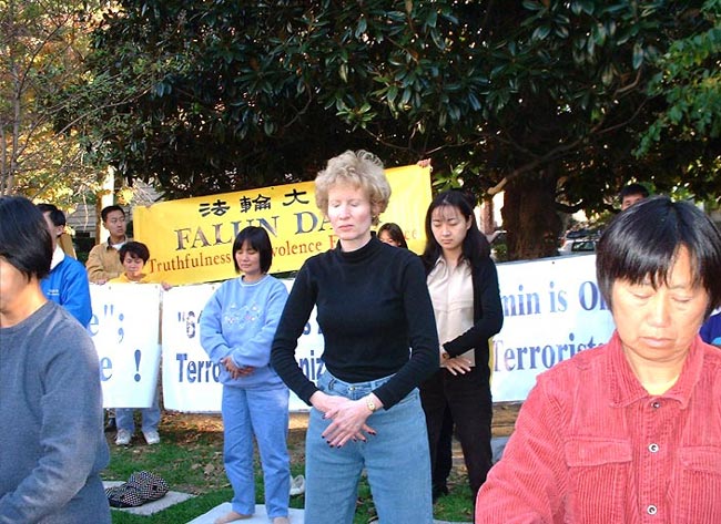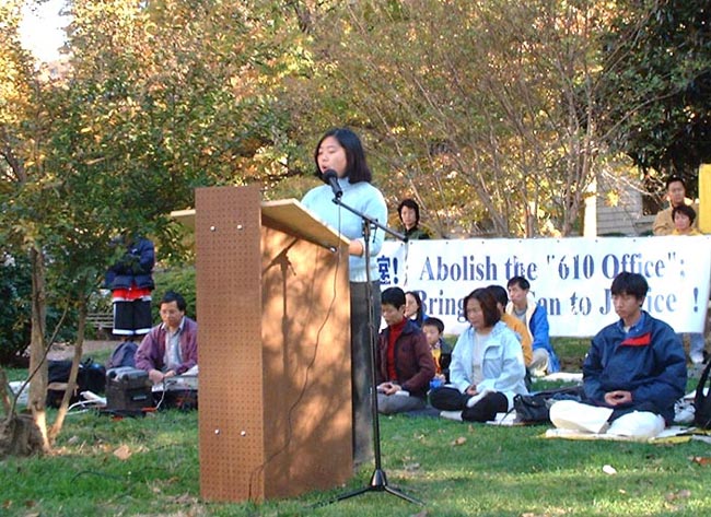 下午3点,弟子宣读了一份媒体声明,强烈谴责江泽民政治流氓集团对长春及中国各地法轮大法修炼者的疯狂迫害,呼吁世人的支持和帮助制止镇压,及救援大陆的同修。(全文见:海外法轮功学员就数名长春同修被迫害致死发表声明)