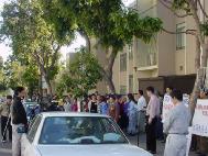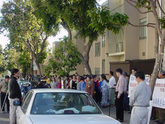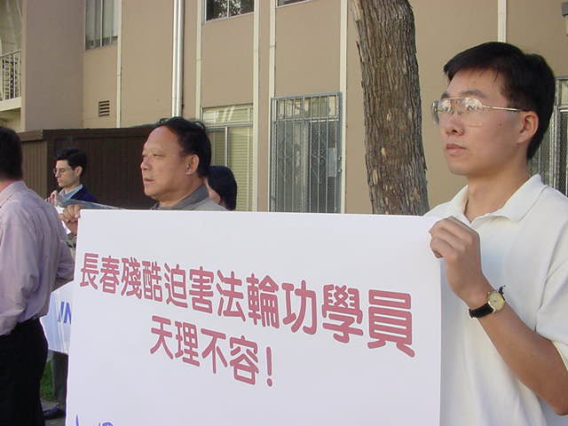 许多过路人及车子纷纷停下,接受学员们分发的传单,浏览学员们摆放的大幅揭露警察暴行的彩色照片;并关心国内学员们的处境。